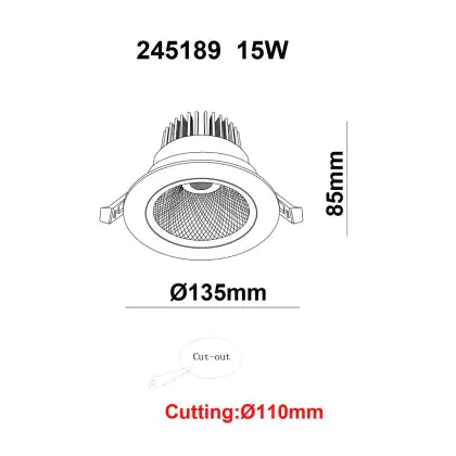 Beschrijving LED Downlight Rond Kantelbaar 15W 1200lm 60D - 930 Warm Wit | 135mm - Zaagmaat 110mm - UGR <19