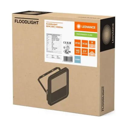 Beschrijving Ledvance LED Breedstraler Aluminium Zwart 69W 10000lm 100D - 865 Daglicht | IP66 - Symmetrisch