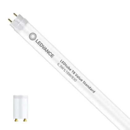 Beschrijving Ledvance LED Buis T8 Superior (EM/Mains) Standard Output 6.3W 995lm - 830 Warm Wit | 60cm - Vervangt 18W