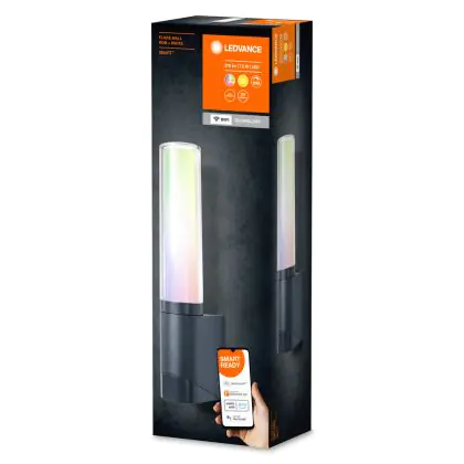 Beschrijving Ledvance Smart+ Wifi Wandlamp Flare Donker Grijs Buiten 7.5W 320lm - 830 Warm Wit | RGBW - Dimbaar