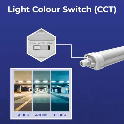 Denk ook goed na over het kiezen van de juiste kleurtemperatuur. Deze LED montagebalk heeft als kleurtemperatuur: 3000K - 4000K - 6500K CCT. Voor ruimtes waar weinig tot geen natuurlijk daglicht aanwezig is, raden wij de kleurtemperatuur 6500 Kelvin (daglicht wit) aan. Vooral voor dieren in een stal is dit een prettige lichtkleur. 4000 Kelvin (koel wit) is qua tint ook nog steeds fris en natuurlijk van aard en past daarom ook in vele (werk)situaties, zoals in een magazijn, bouwmarkt of fabriekshal. 3000 Kelvin (warm wit) is qua licht wat zachter van aard en past daarom vooral in ruimtes zoals een hal, gang, trappenhuis of galerij.