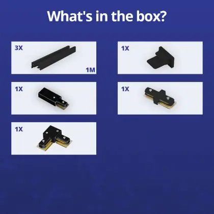 | Fabrikantnaam | Complete L shaped 1-Phase Track Set Black – 1 x 2 meter incl. End Cap, Power Connector and L -Conne | |